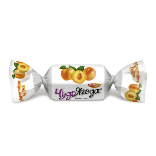 Конфеты Чудо-Ягода мармеладная курага производства Рот Фронт можно купить оптом с доставкой по Москве, Подмосковью и ЦФО. Низкая цена обусловлена отсутствием посредников при наличии прямого договора с производителем.  Все актуальные сертификаты в наличии. Минимальный заказ: 1 коробка