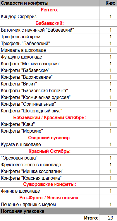 Кол-во сладостей: 23