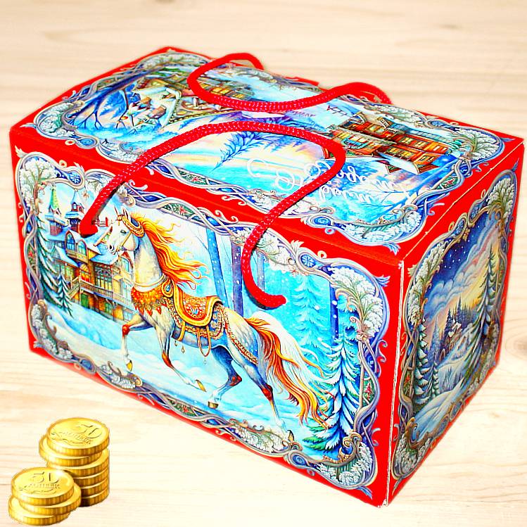 Сладкий новогодний подарок в виде шкатулки от фабрики Красный Октябрь в Королеве