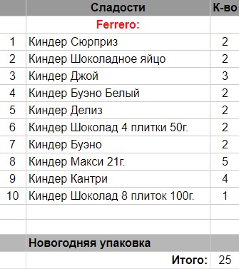 Кол-во сладостей: 25 шт.