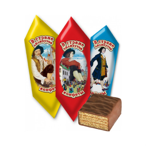 Вафельные конфеты В стране лилипутов производства фабрики Славянка можно купить оптом с доставкой по Москве, Подмосковью и ЦФО. Низкая цена обусловлена отсутствием посредников при наличии прямого договора с производителем. Все актуальные сертификаты в наличии. Минимальный заказ: 1 коробка